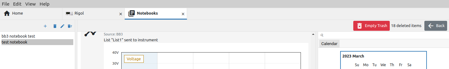 The Notebooks feature enables data collected from one or more sources (instruments) to be stored and presented in one place. Data stored in this way can be searched as if they belonged to a single source. Notebooks can also be appended, exported and imported, which facilitates the exchange of collected data.