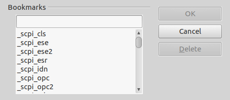 The SCPI subsystem bookmark name has to begin with _scpi_subsys_ prefix, and it is named _scpi_subsys_ieee488 in our example. To insert bookmark, use Insert … Bookmark … option that will open a new entry form as shown on Fig. 2.