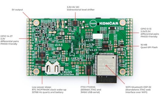 ULX3S uses powerful Lattice Semiconductor ECP5 series FPGA chip supported by the latest open-source toolchains. This makes the ULX3S one of the most powerful and desirable platforms for FPGA enthusiasts available today. ULX3S comes equipped with onboard WiFi, display, buttons, LEDs and storage. Flash it using the WiFi connection (over-the-air update), or with one of the bitstreams stored on SD card and browsed by onboard OLED display and buttons. Due to its battery-backed RTC, it can power down completely and wake up only on certain events making it useful for low power applications.